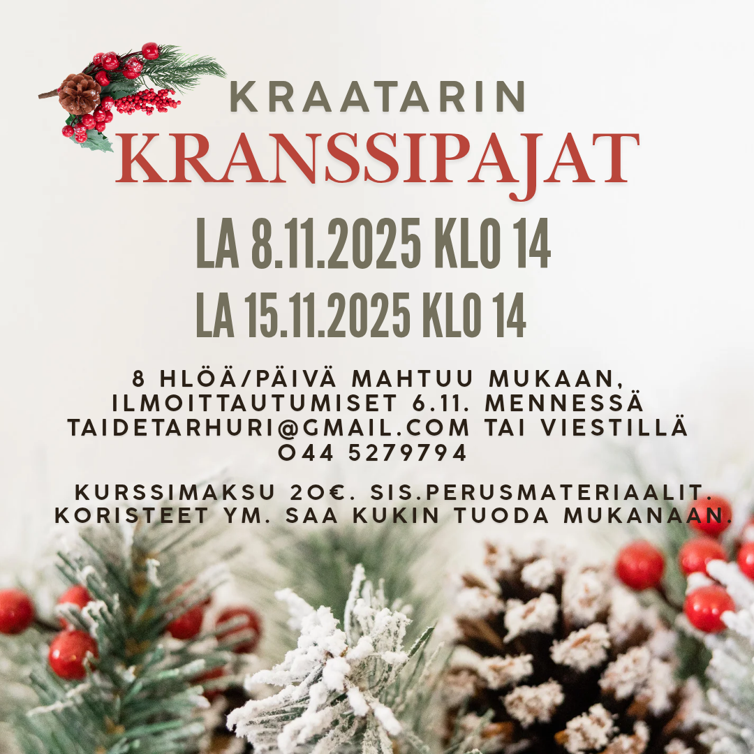 Maksu paikanpäällä (myös käteinen). Huom! Tilaa rajoitetusti.